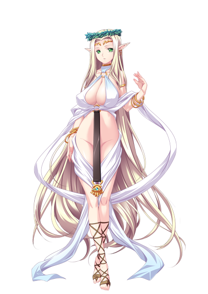 A high elf revered as the reincarnation of the Goddess Larentia, who is widely worshipped by the people of Eos. She is adored, respected, and loved by all of the people of the Seven Shield Alliance, but in that same vein, she is abhored by all demons. Her flawless skin and ample breasts are known far and wide.