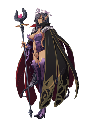 The dark-elf queen of a fallen kingdom, with long black hair and a perpetual, almost melancholic expression. Pure dark elves are extremely rare, rarer even than high elves. She considers dark elves to be a noble race far and above other races. As a witch, she possesses the unique ability to increase the physical prowess of monsters several times over—and is the cause of hundreds of years of war and atrocities.