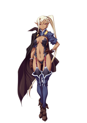 A mercenary who wanders the land, pledging fealty to no group or master. She is highly skilled with a wealth of experience, and many a Black Dog admires and lusts after her. She has a caring, older sister-like personality, but is rather callous towards males who make advances toward her. She was once approached by a wealthy man who had sought to take her on as an escort, but she brusquely rejected him on that occasion as well.